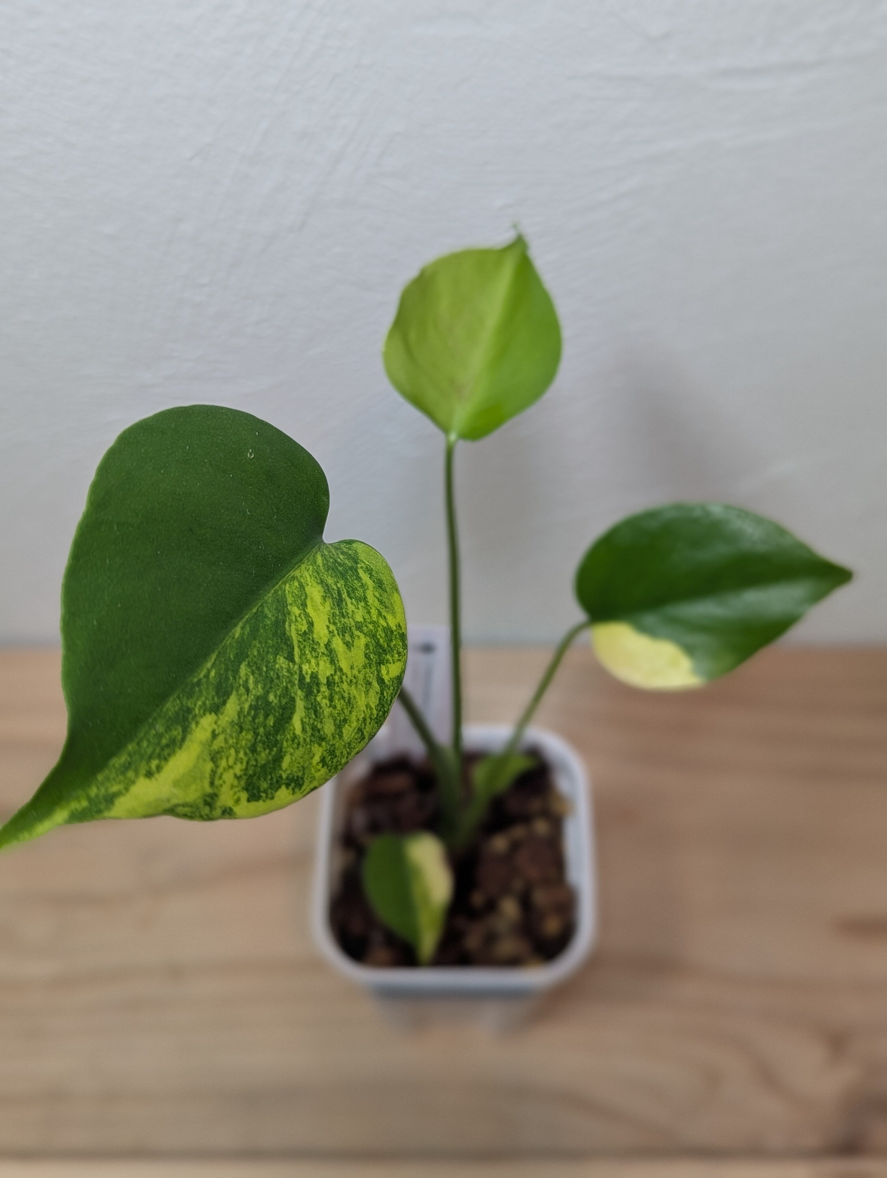 鮮やかな黄斑が魅力の希少品種“イエローマリリン”。光の当たり方によって様々な表情を見せる美しい葉が特徴です。こちらの株は葉色のバランスも良く、今後の成長も非常に楽しみな個体です。