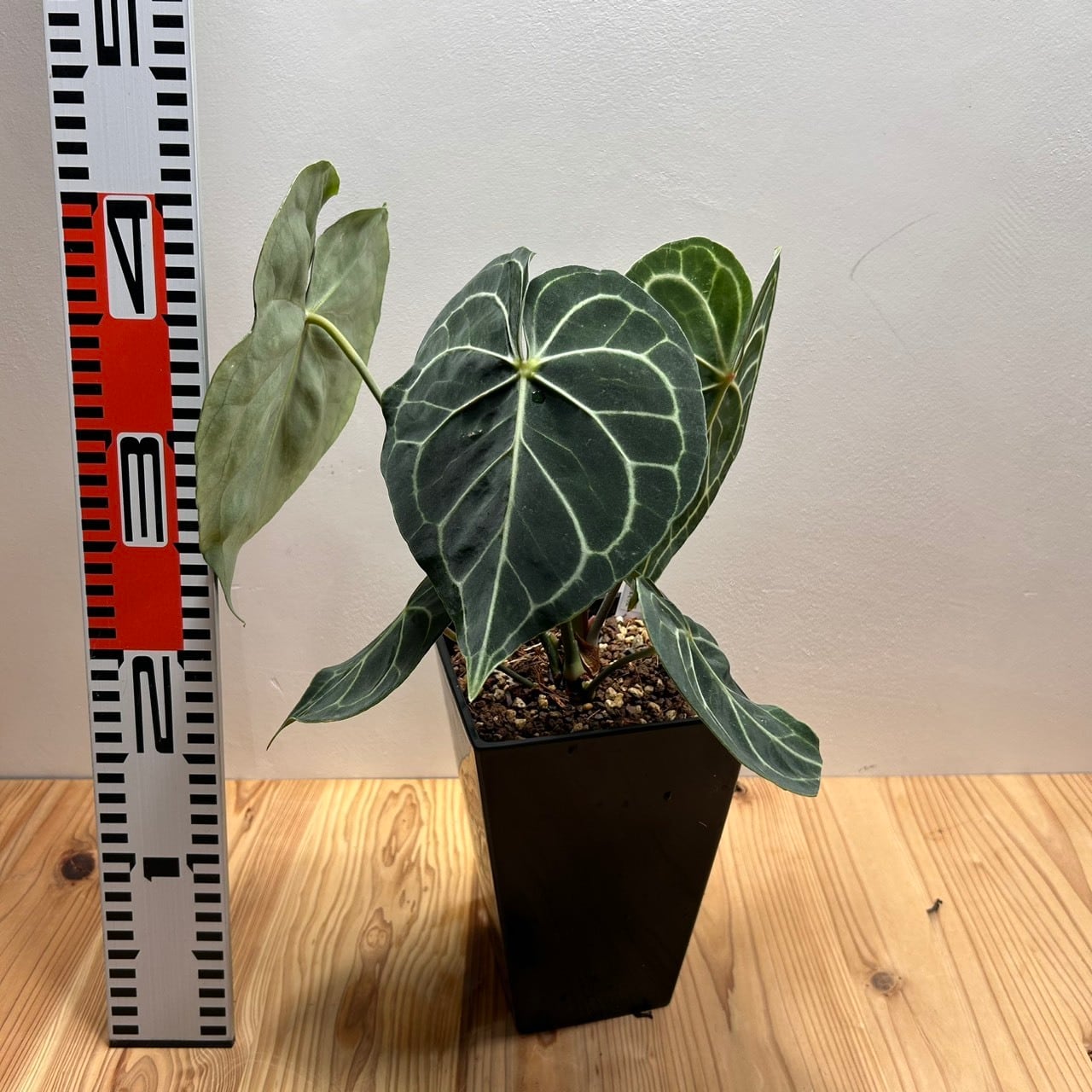 葉の美しさ: 最大の魅力は、葉脈が白く浮き出るコントラストの強い美しい葉です。花(仏炎苞)は緑色で地味ですが、葉のワイルドな魅力がインテリアとして人気です。